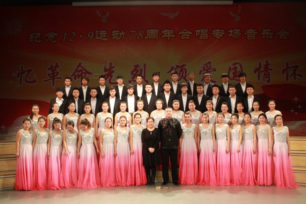 合唱团成立之初,同学们并没有接触过合唱,对合唱的概念还比较模糊,总在练习演唱时喜欢单兵作战,默契程度不好,音准与节奏的把握能力比较弱,但是老师并没有因此而失去信心,反而更加积极努力地想办法提高大家的合唱能力。刘旭老师与安雯老师每次指导排练都要到晚上9点多才能回家。有一次,刘老师在排练中生病,但是仍然坚持着带领同学们将排练进行完毕。安老师家里孩子年龄小,生病了也没时间照顾,几次排练都带着孩子来到排练现场。老师的无私奉献和敬业精神,深深地感染和鼓舞着每一名合唱团团员。指导老师从一点一滴做起,逐渐提高难度,通过借鉴各种合唱团表演的音像资料、讲解世界各国著名的合唱团队是怎样训练出来等诸多办法,帮助同学们了解、把握、驾驭和热爱上合唱这门高雅艺术。同时学校聘请哈巴罗夫斯克文化艺术大学合唱指挥教授丽娜为合唱团进行了为期半个月的大师课培训。在整个合唱团的练习过程中,四个声部的声部长起到了关键作用,他们利用休息时间,带领每一个声部进行练习,风雨无阻。认真负责到声部的每一名同学,程度稍差点的同学,声部长一句一句地教。就这样,在一系列努力培养下,音乐与舞蹈学院合唱团一步步成长、壮大起来。