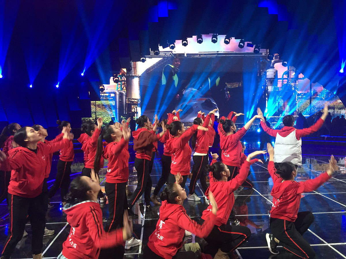 我校音乐与舞蹈学院舞蹈表演专业20名学生刚参演央视秋晚,就放弃了十一假期投入到竞演的紧张训练中,在本轮竞演节目中,我校舞蹈专业学生参加了舞蹈《鹤舞百湖》、《古筝与萧》、《马头琴畅想》、《城市节奏》四个节目录制工作。由于训练强度大、节目质量要求高,学生们经常要训练的凌晨才能结束。学生们优异的表现,得到了市领导的高度评价。