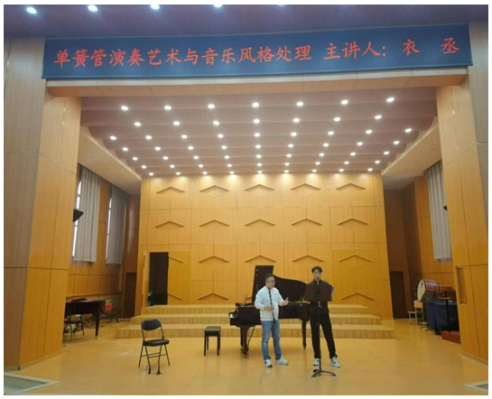 衣丞是国内著名的单簧管演奏家和教育家,他通过自己深厚的音乐功底和丰富的舞台表演经验,为在场的师生详细讲解了单簧管的独特魅力及其在演奏不同时期音乐作品的特点。讲座现场,衣丞教授向参会师生分享了他个人的演奏经验和心得,还与大家深入探讨了浪漫时期、古典时期以及近现代单簧管作品的风格特点。