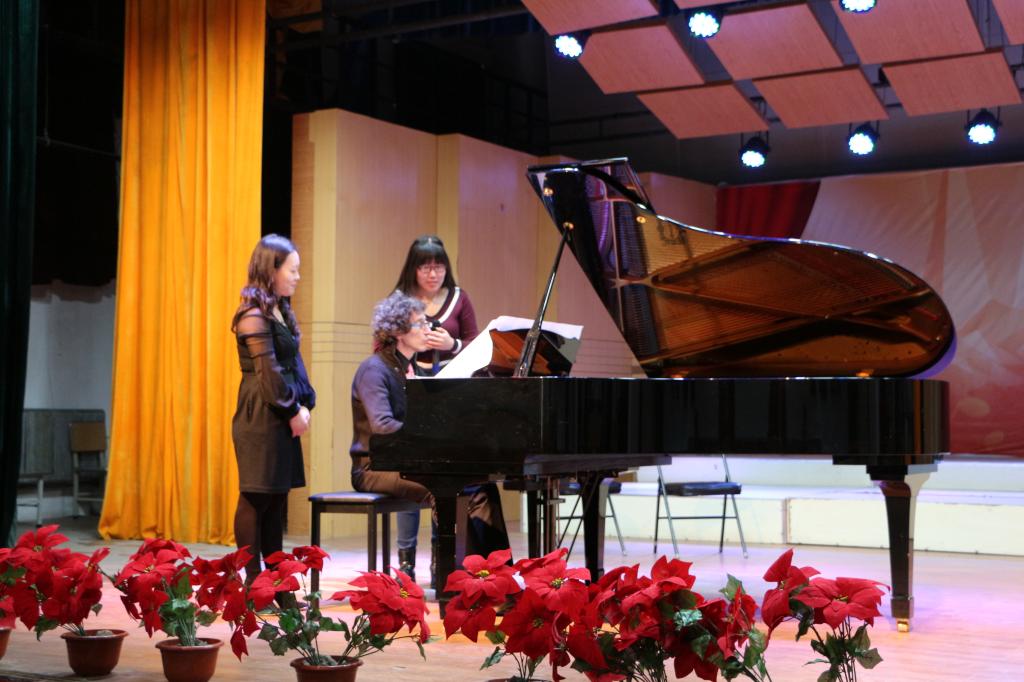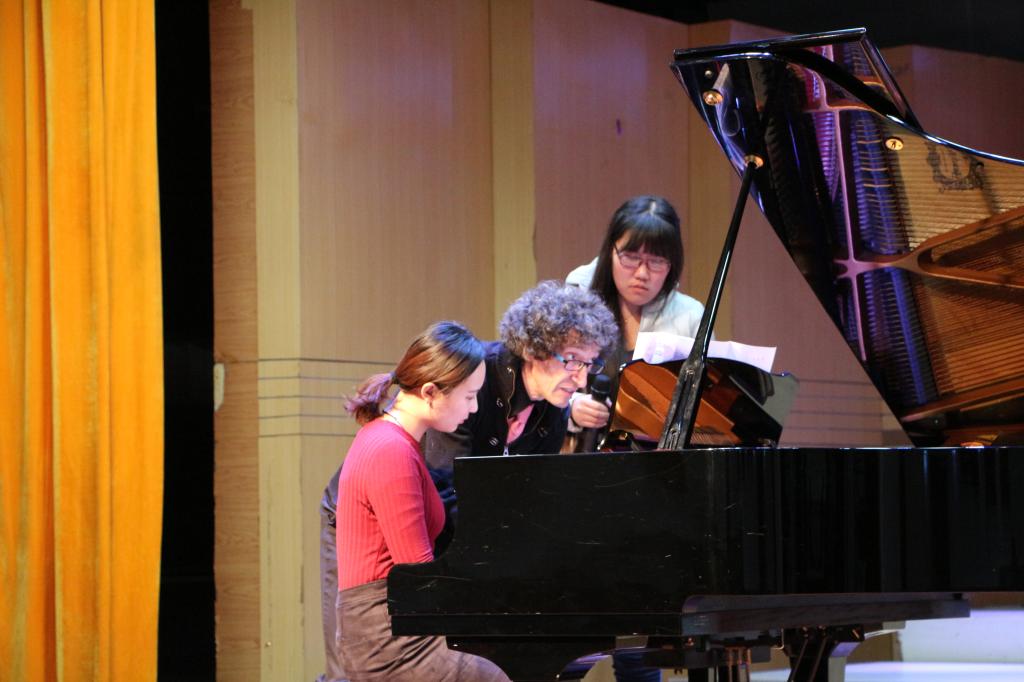 上午9时,安东尼奥教授认真的聆听了音乐与舞蹈学院键盘系李轶男、刘菁菁、张浩三位老师演奏的多首艺术作品并分别进行了详细点评和指导。