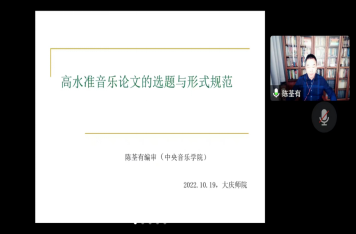 10月19日15时,中央音乐学院编审、博士生导师、《音乐研究》杂志原常务副主编陈荃有教授为我院教师做题名为《高水准音乐论文的选题与形式规范》的讲座。讲座采用腾讯会议形式,全院教师聆听了讲座。