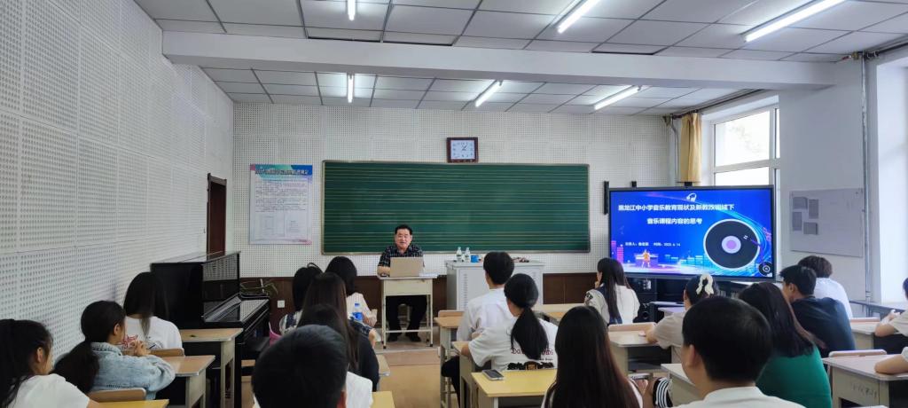 6月14日下午,大庆市教师发展学院音体美部主任鲁宏国教授应邀来我院做题名为《黑龙江中小学音乐教育现状及新教改视域下音乐课程内容的思考》的讲座,我院音乐教育系师生聆听了本次讲座。