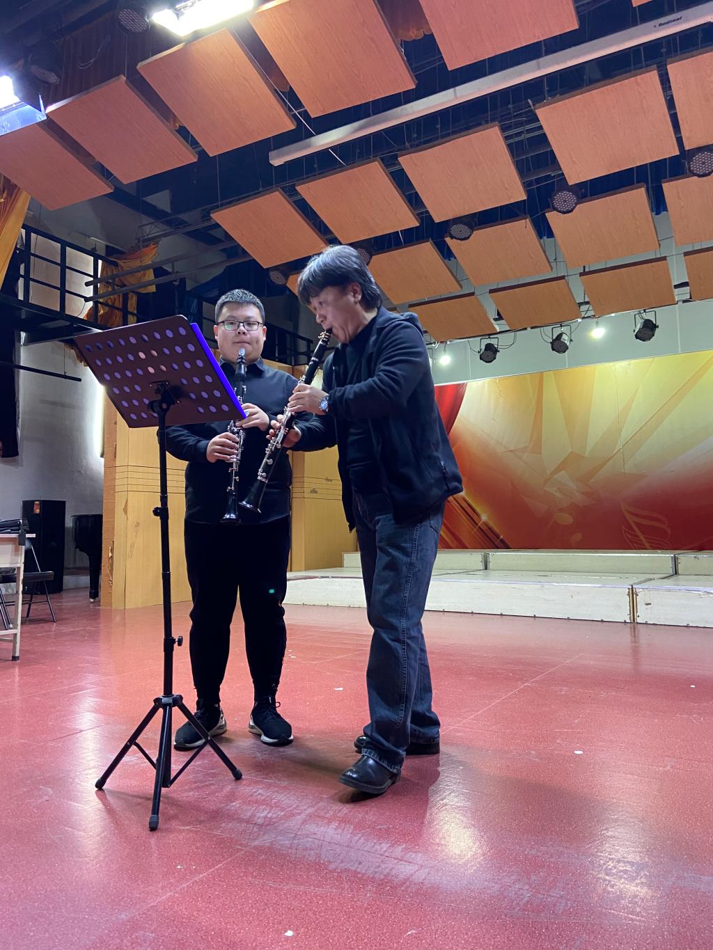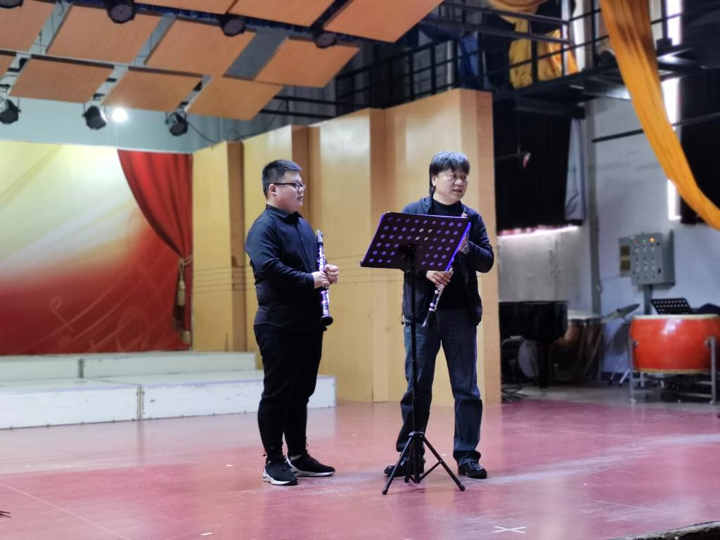 郑教授还对我院单簧管学生现场演奏进行了指导,对学生在作品处理中的问题进行细致解答。同学们演奏风格不同,多以古典风格为代表,郑教授亲自示范,让同学们感受到单簧管音乐流动性的重要并详细讲述了单簧管在气息、吐音、连音等技巧性问题。