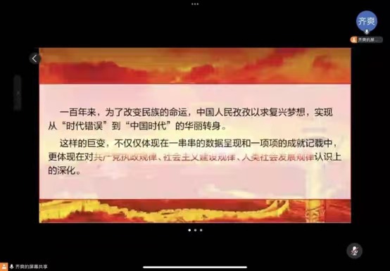 本次宣讲活动进一步提高了同学们政治觉悟、理论水平与历史责任感。宣讲结束后全体学生一致表示自己当铭记党中央和习近平总书记对广大青年的殷殷嘱托,不忘初心,牢记使命,高扬新时代中国特色社会主义伟大旗帜,无愧青春,为祖国建设添砖加瓦。
