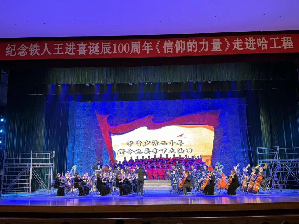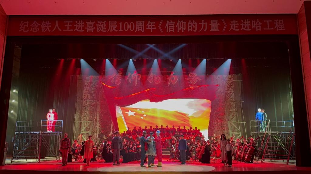 为了全面深入学习贯彻落实习近平新时代中国特色社会主义思想和党的二十大精神,进一步弘扬大庆精神(铁人精神),纪念铁人王进喜诞辰100周年,传承红色基因、赓续红色血脉,引导广大团员和青年学子坚定理想信念。12月4日,由黑龙江省总工会指导支持、大庆市总工会主办,大庆文体旅集团承办,音乐与舞蹈学院合唱团受邀参演舞台剧《信仰的力量》。
