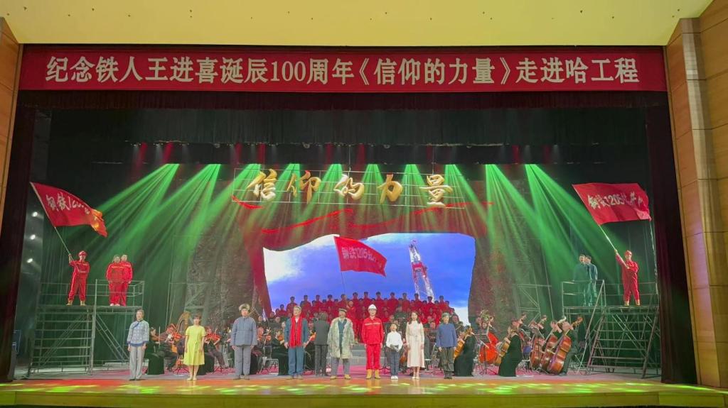 《信仰的力量》是一部为纪念铁人王进喜诞辰100周年而创作的大型原创交响情景舞台剧,该剧由“出油”、“稳油”、“兴油”、“加油”四个篇章构成,全剧以大庆油田三代铁人的感人故事为主线,融合话剧、合唱、歌舞等表演方式,从王进喜“宁肯少活二十年,拼命也要拿下大油田”,到王启民“宁可把心血熬干,也要让油田稳产再高产”,再到李新民“宁肯经历千难万险,也要为祖国献石油”,无不饱含着中国石油工人的崇高职业精神和坚定理想信念。