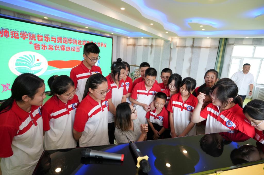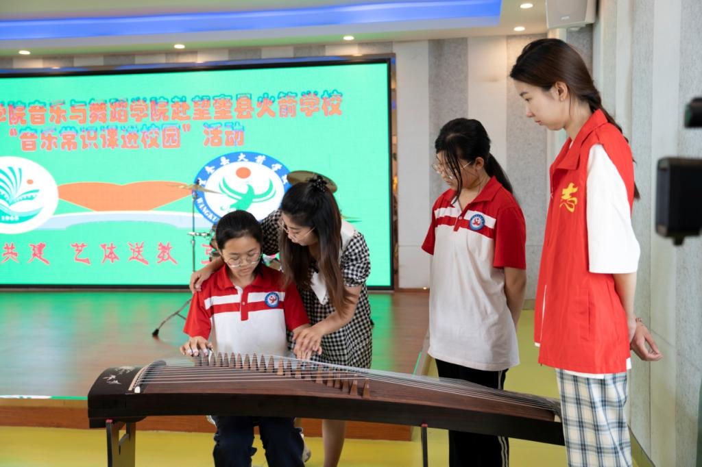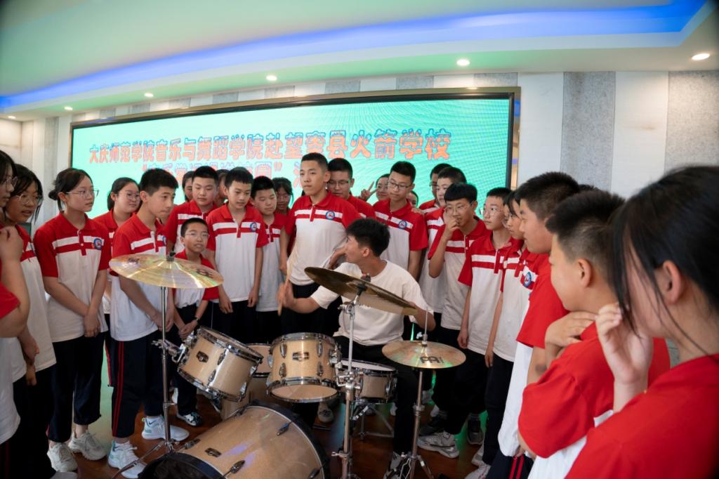 接下来,音乐与舞蹈学院的志愿者们为火箭学校的同学们带来了一堂生动的音乐常识课,为他们进行了声乐、钢琴、古筝、舞蹈的教学与展示和架子鼓表演。通过本次音乐常识课,进一步提高了火箭学校同学们对音乐的兴趣,让学生体会到课堂不仅仅局限于阅读和书写,还有音乐之美、欣赏音乐之美。我们将进一步加强与火箭学校的联系,根据学校的需要,开展形式多样、丰富多彩的社会实践活动,进一步提高服务乡村教育的能力和水平。