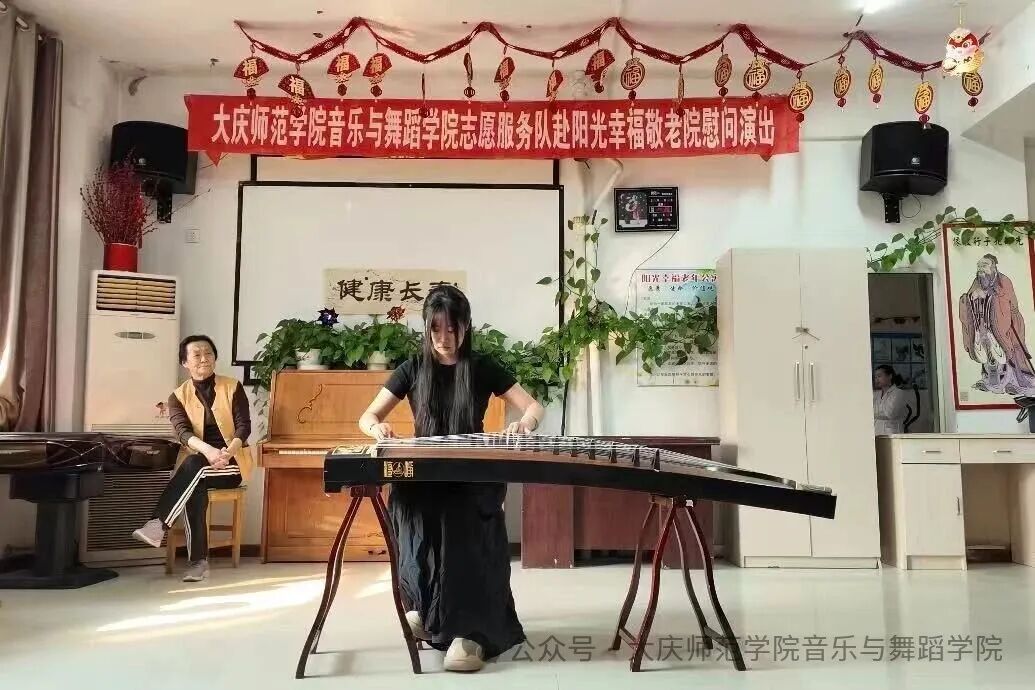 为进一步丰富老人们的文化生活,志愿者们为老人们准备了一场精彩纷呈的文艺演出。开场舞蹈《大东北》热情奔放、地域特色浓郁,瞬间点燃现场气氛,将活动推向高潮。随后,婉转悠扬的声乐演唱温柔治愈、声声入心;二胡、古筝旋律清雅婉转、深情动人。志愿者们以扎实的专业功底和丰富多彩的艺术形式,为老人们带来了温暖、温馨的视听享受,赢得老人们的一致好评。老人们纷纷表示,同学们的到来为敬老院增添了生机与活力,让大家真切感受到来自青年学子的关怀与温暖。