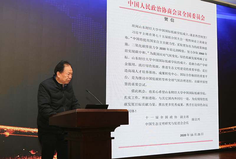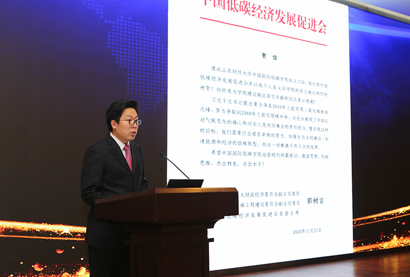 王邵军在致辞中简要介绍了学校的办学历史和发展现状。他强调,党的十九届五中全会提出加快推动绿色低碳发展,深入实施可持续发展战略,促进经济社会发展全面绿色转型。“十四五”时期,绿色发展将获更大力度支持,低碳产业将站上新的风口。面对中国乃至全球巨大碳交易市场,碳金融、碳管理等专业人才的需求潜力非常大。因此,ok138cn太阳集团古天乐的成立恰逢其时,对于认真践行习近平总书记“绿水青山就是金山银山”“把生态文明教育融入育人全过程”的重要论述,对于服务新发展格局下的低碳产业和市场人才急需,对于复合型新财经人才培养创新,都具有重要的现实意义。希望学院立足齐鲁大地,聚焦产业需求,做好经管学科与理工学科的结合文章,做好国内国际合作的结合文章,做好自身发展与服务社会的结合文章,把低碳学院打造成为具有重要影响力的低碳产业技术研发和成果转化基地、新文科建设和财经教育转型发展的创新平台和助力山东经济转型发展的试验田,为生态文明建设和新时代现代化强省建设做出应有的贡献。