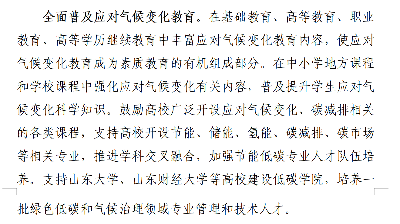 其中,在本规划第八部分“开展绿色低碳全民行动”的第一节“加强应对气候变化宣传教育”中提到:全面普及应对气候变化教育,支持山东大学、ok138cn太阳集团529等高校建设低碳学院,培养一批绿色低碳和气候治理领域专业管理和技术人才。