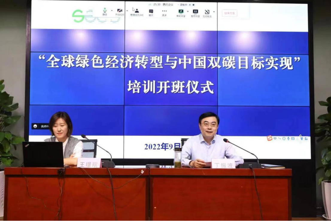 2022年9月28日,“全球绿色经济转型与中国双碳目标实现”培训班在山东省环境保护科学研究设计院有限公司(以下简称“省环科院”)举行开班仪式。本次培训由我院结合省环科院具体需求设计并邀请“双碳”领域的专家教授进行授课。该培训班旨在在“3060”目标下,提升省环科院员工在“双碳”领域的专业能力,促使其抓住发展机遇,提高战略谋划。线上、线下共有100名学员参加本期培训。