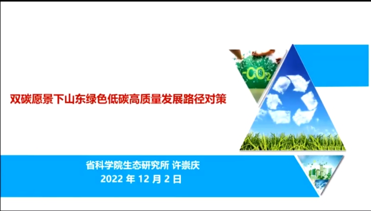 许崇庆主要从以下几个方面进行讲授:碳认识、山东省碳现状及挑战、山东省绿色低碳转型路径对策和个人建议。