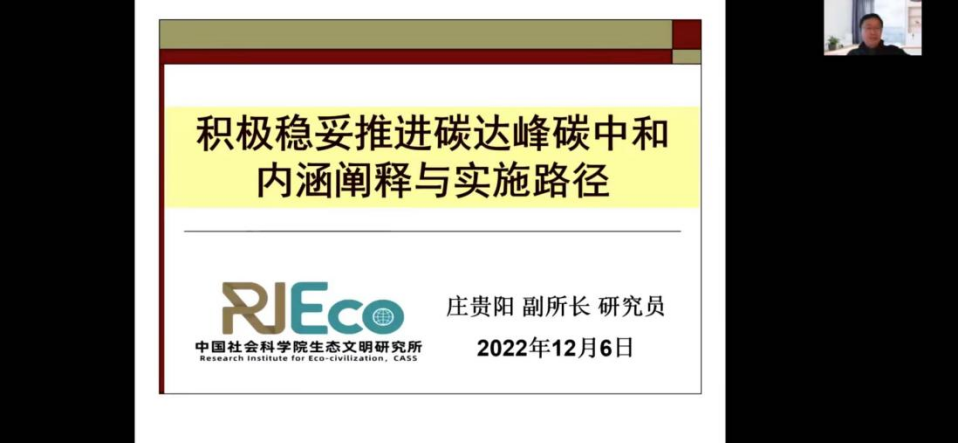 庄贵阳主要从以下三个方面进行讲授:目标承诺与战略共识、转型路径与实现条件、行动逻辑与城市引领。