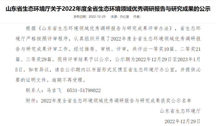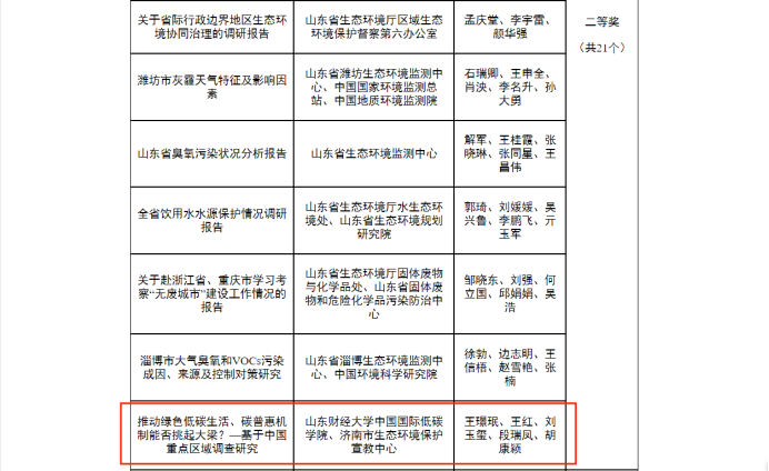 近日,2022年山东省生态环境领域优秀调研报告与研究成果评审结果揭晓,ok138cn太阳集团古天乐调研课题《推动绿色低碳生活,碳普惠机制能否挑起大梁?——基于中国重点区域调查研究》获评二等奖。