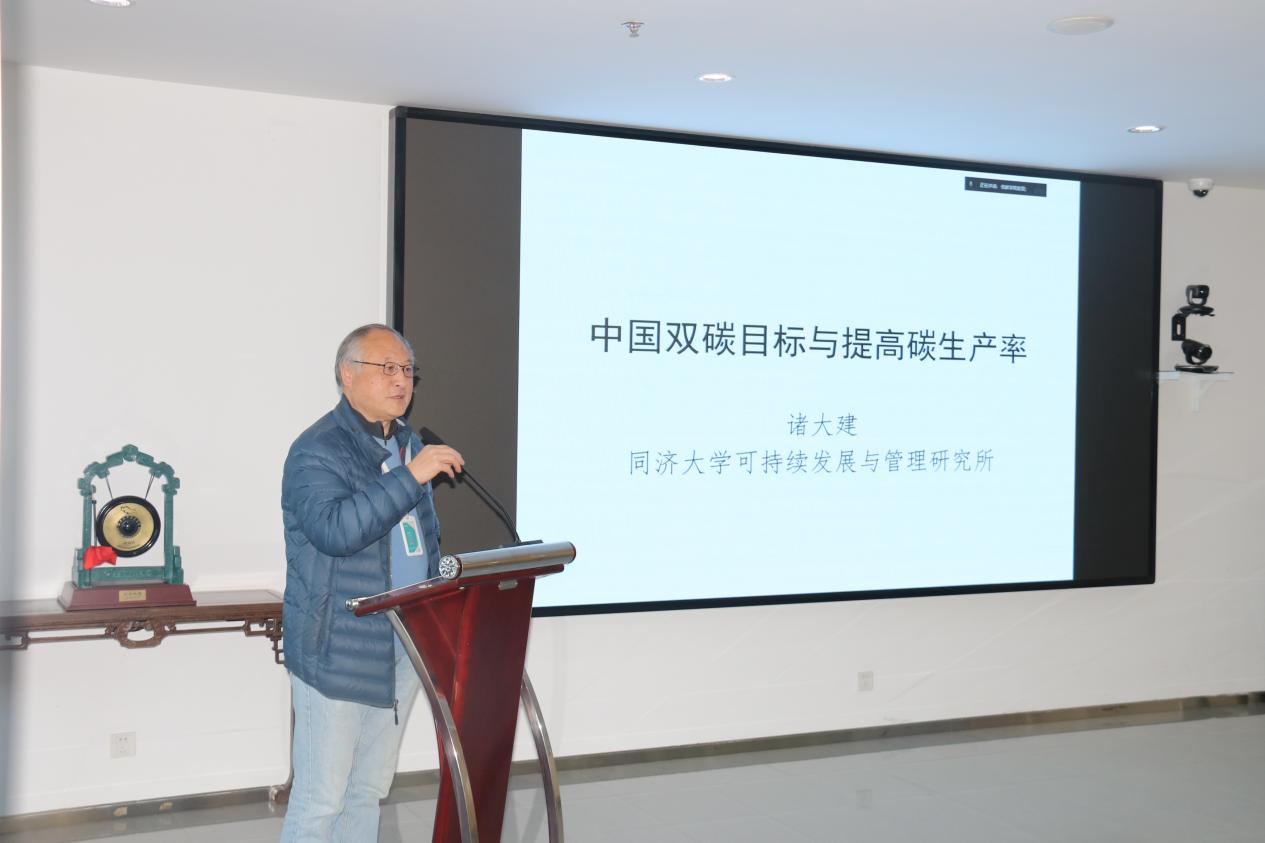 诸大建教授做了题为《中国双碳发展与提高碳生产率》的主题报告。他指出,碳生产率是衡量双碳转型水平和速度的重要指标,并从为什么、是什么、怎么做三个方面阐述了碳生产率的研究内容。他提出企业可在“四个领域三大技术组成的双碳创新矩阵”中找到自身的定位并开展创新探索。