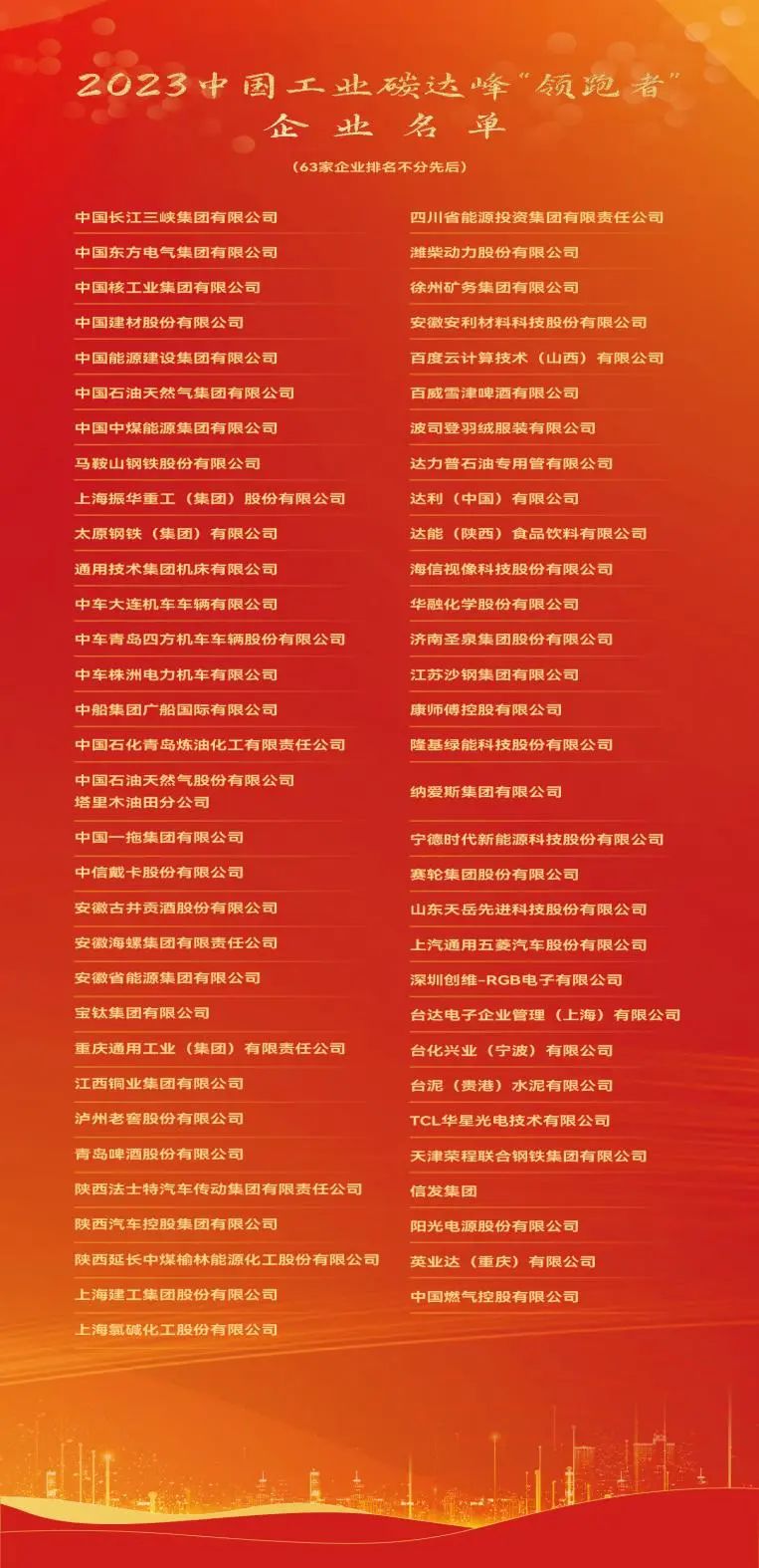 在研究成果发布环节,中国工经联中国工业碳达峰项目组组长刘成林发布了63家2023中国工业碳达峰“领跑者”企业名单和中国工业碳达峰“领跑者”企业研究成果。他介绍,在八个部委和48个地方发改委、工信、国资、生态环境部门的指导和支持下,2023年中国工业碳达峰“领跑者”企业研究工作选出了63家“领跑者”企业,形成了《2023中国工业碳达峰“领跑者”企业研究报告》等4项研究成果。中国工经联将在有关部委、地方政府和行业组织的支持下,持续做好中国工业碳达峰“领跑者”企业研究工作。