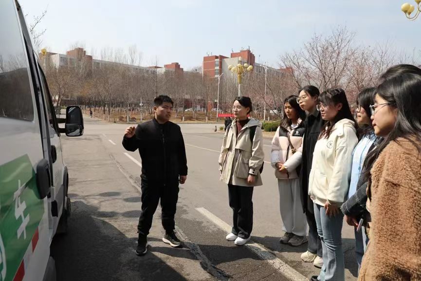 省生态环境监测中心工作人员邀请同学们走进大气环境检测车,现场演示走航监测的流程和意义。