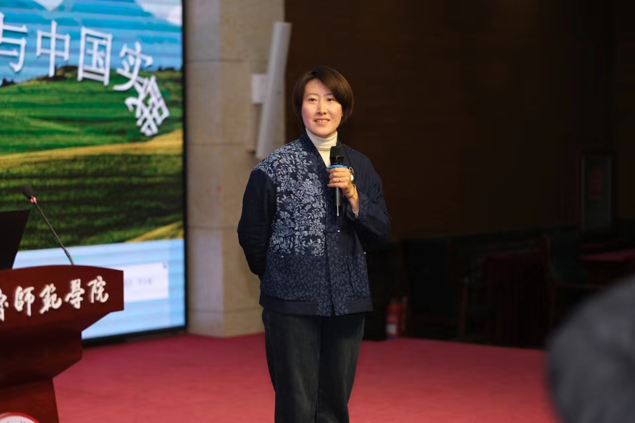 王璟珉围绕“应对气候变化:理论研究与中国实践”做专题报告。什么是气候变化?应对气候变化,中国有哪些行动?山东又如何践行绿色低碳高质量发展?王璟珉院长用生动的语言和直观的数据图表向同学们科普应对气候变化的相关知识。