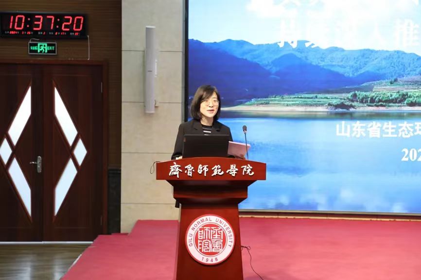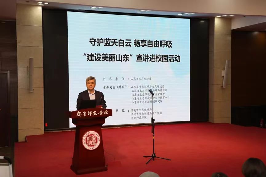 3月26日上午,省、市、区三级生态环境部门在齐鲁师范大学开展“守护蓝天白云·畅享自由呼吸—— ‘建设美丽山东’宣讲进校园”活动。省生态环境厅二级巡视员张金智、齐鲁师范学院副校长张兆明参加活动并致辞。我院王璟珉教授受邀参加活动并演讲。