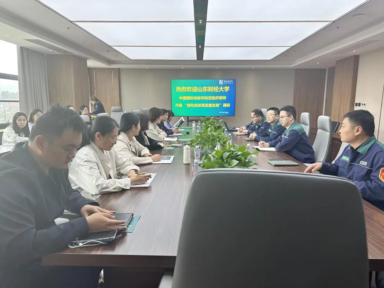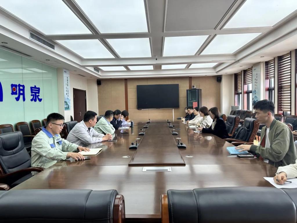 调研第一站是华电章丘发电有限公司。该公司自2001年成立以来,一直积极履行中央企业的社会责任,深入落实党的二十大精神,专注于绿色低碳转型。华电章丘发电公司不断挖掘供热潜力,以生产现场的实际问题为导向,以青年员工为主力,大幅提升创新能力,保供同时,显著降低了供电消耗,并且积极推动新旧动能转换及能源结构调整,加大新能源项目建设。调研期间双方就目前企业碳管理,企业创新管理,校企合作等进行了交流。