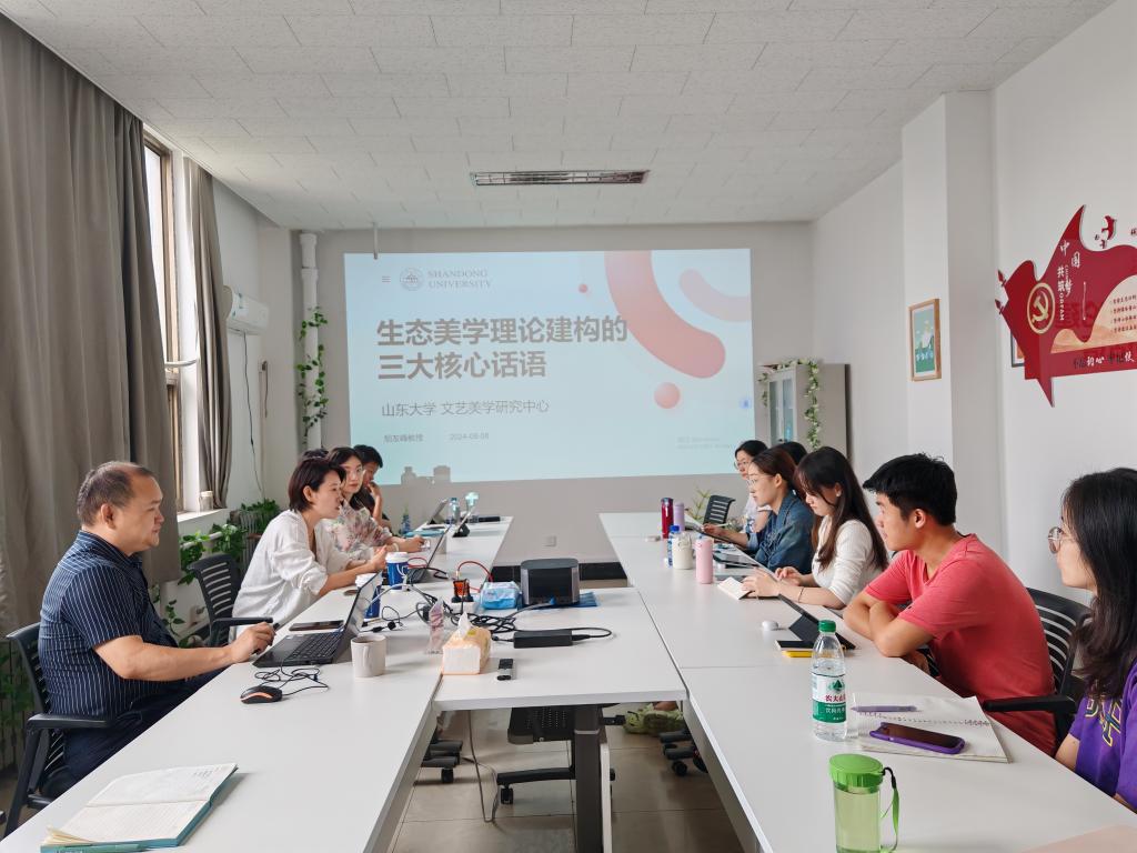 9月11日下午,学院在燕山校区2号教学楼2807会议室举办2024级新生入学专业教育“学科与学科之间”第二讲。本期讲座邀请到《新文科理论与实践》编辑部主任、山东大学特聘教授、博士生导师胡友峰,围绕“中国生态美学理论建构的三大核心话语”这一主题进行讲授,学院部分教师及2024级全体新生参加。