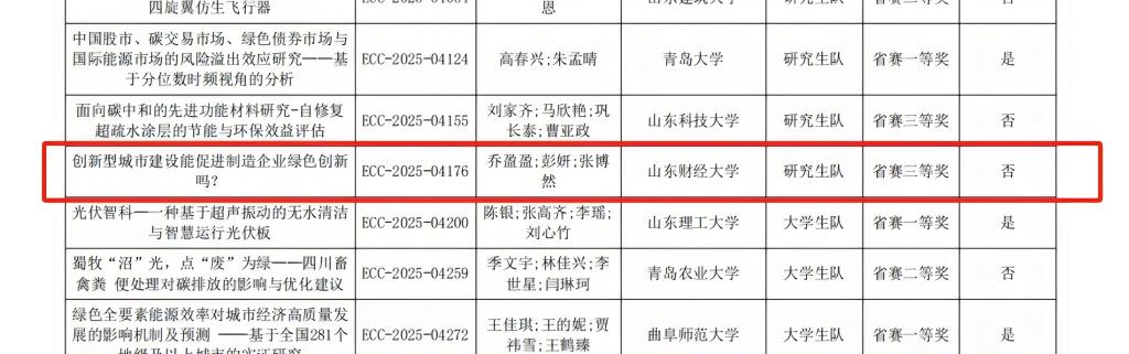 本次比赛聚焦能源经济领域的前沿问题,旨在激发学生对能源与经济交叉学科的研究兴趣,提升其科研创新能力与实践应用水平。我院研究生的参赛作品以企业绿色创新为研究主题,运用实证分析方法,深入探讨创新型城市试点政策对企业绿色创新的影响,研究内容丰富,数据严谨。