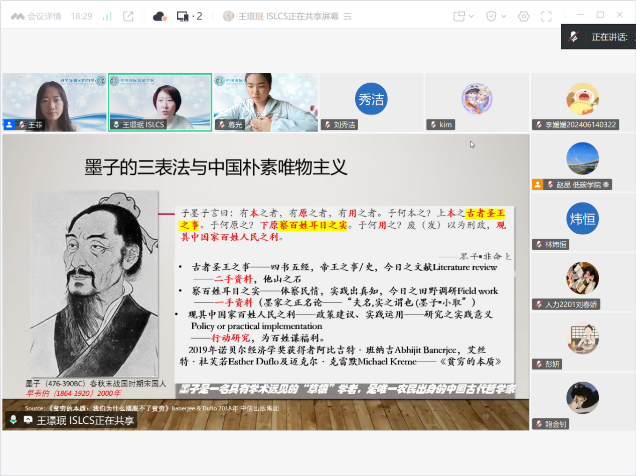 最后,王璟珉及各分队指导老师分别对各队的调研方案提出了指导意见,希望同学们能够把握住学校"三千计划"这一重要调研平台,在调研过程中锻炼调研技能、团队合作能力以及学术研究和写作水平。此外,老师们还强调,同学们在开展调研时要注重宣传气候变化应对和低碳生活理念,以实际行动助力我国绿色低碳高质量发展。