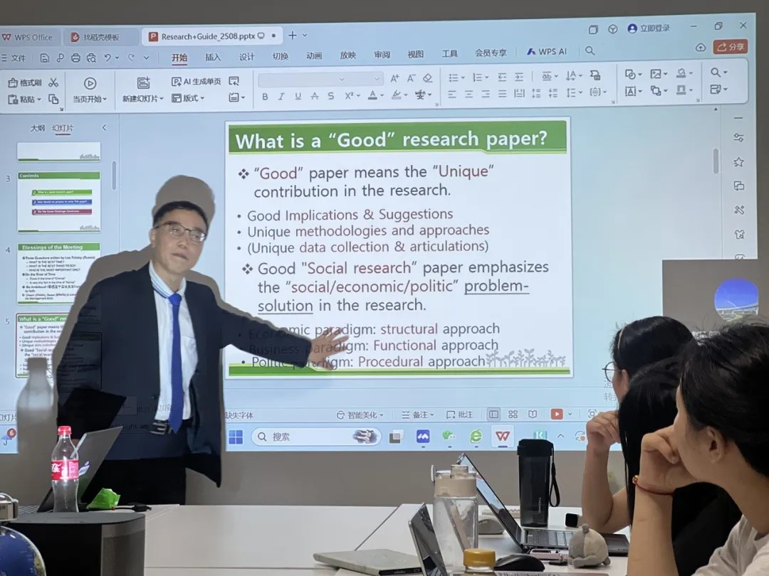 近日,为期 18 天的国际课程圆满落下帷幕。韩国仁荷大学崔龙录教授从 9 月 4 日至 9 月 21 日,为学院研究生带来了总计 32 个课时的优质国际课程——《经管交叉学科科研写作课程》。课程内容兼具专业性与前沿性,有效提升低碳经济与管理专业研究生的学术能力,有效拓宽了学生的国际学术视野。