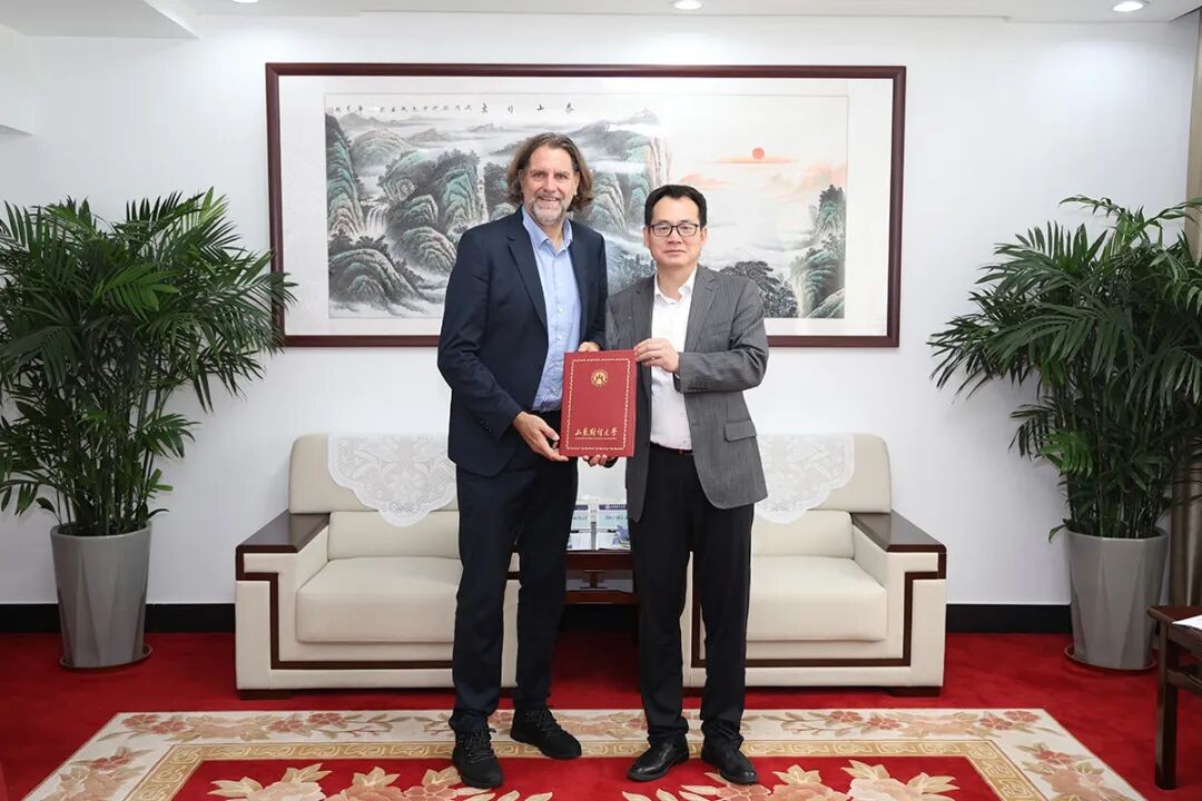 会谈结束后,洪俊杰校长向吕安迪院士颁发“特聘教授”聘书。
