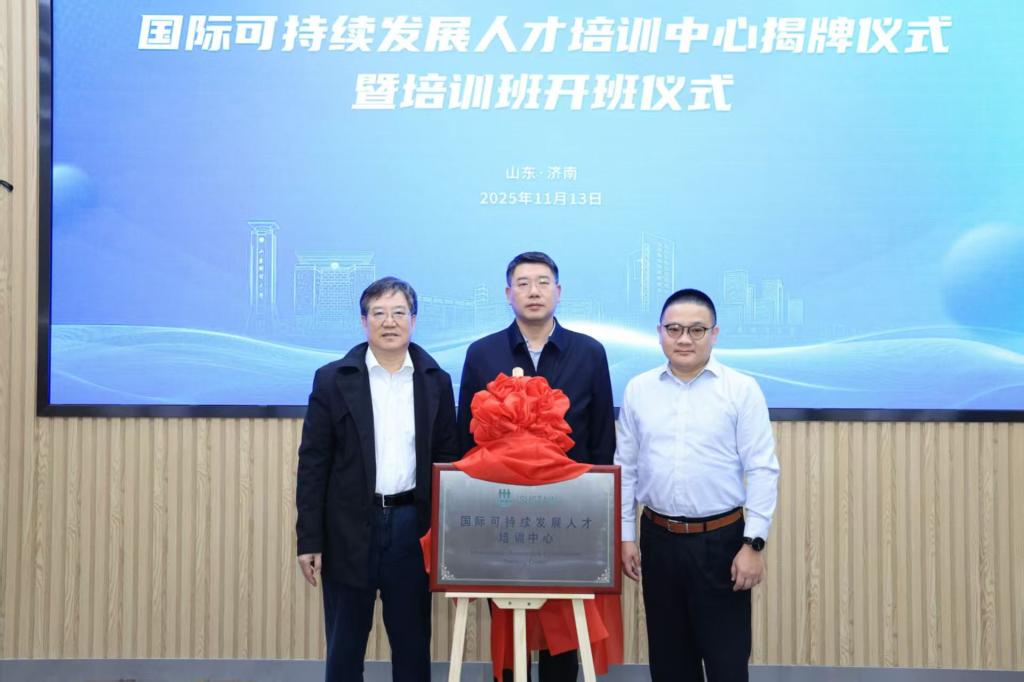 随后,刘旻航、毛陈臣、赵培建代表中心共建三方为“国际可持续发展人才培训中心”揭牌。