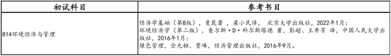 814-环境经济与管理由我校自行命题,参考书目详见我校《2024年硕士研究生招生专业目录》。