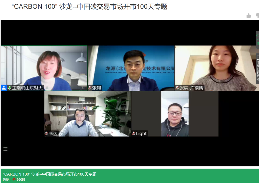 张辰:希望未来能有更多的这样的活动,也希望和各个学术界还是市场的参与者,然后有更多的交流和活动。今天是这100天,希望在未来的很长的时间内,在100年以内看到碳市场越来越好越来越壮大。