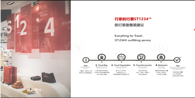 首先,Amy总简单介绍了UTC行家以及UTC行家针对顾客提出的旅行装备整装建议。UTC行家成立于2007年,是中国第一家多品牌多渠道旅行装备专业运营商。将众多国际专业旅行品牌首次引入中国市场,并已发展为拥有设计开发制作、营销推广以及客户服务等整合能力的综合运营商。在旅行装备整装建议方面,通过以了解每一种旅行方式来推荐专业的整装建议为目的,介绍了UTC行家的产品或服务,包括旅行箱、打理系统、旅行功能配件和旅行背包。