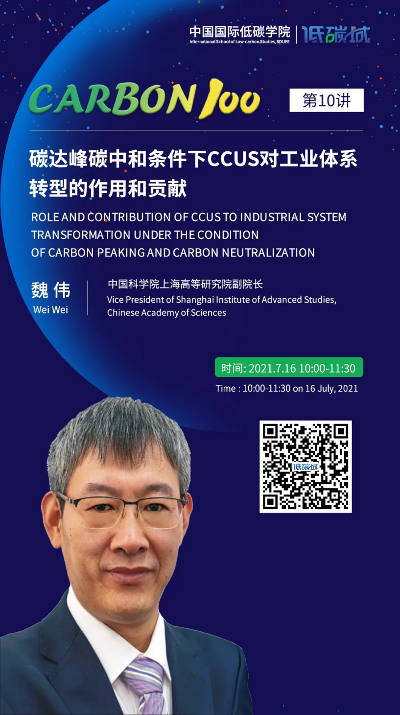 2021年7月16日,中国科学院上海高等研究院副院长魏伟做客ok138cn太阳集团古天乐“CARBON 100” 第10讲,题目:碳达峰碳中和条件下CCUS对工业体系转型的作用和贡献!