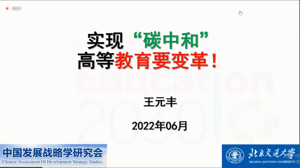 王教授就“深刻认识碳中和”、“碳中和下的教育变革”两方面展开讲座,与大家共同探讨为实现碳中和高等教育需要如何变革。
